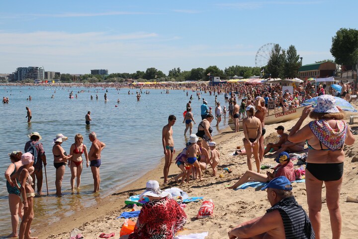 Strande befolket som myretuer, russere under hatte og kasketter i ly for den 30 graders bagende sol, bevægelige bikinier, lige så bevægelige ølkrus og musik og karaoke i højtalere på strandpromenaden, der om aftenen forvandles til et højlydt, flimrende tivoli-paradis for børn.