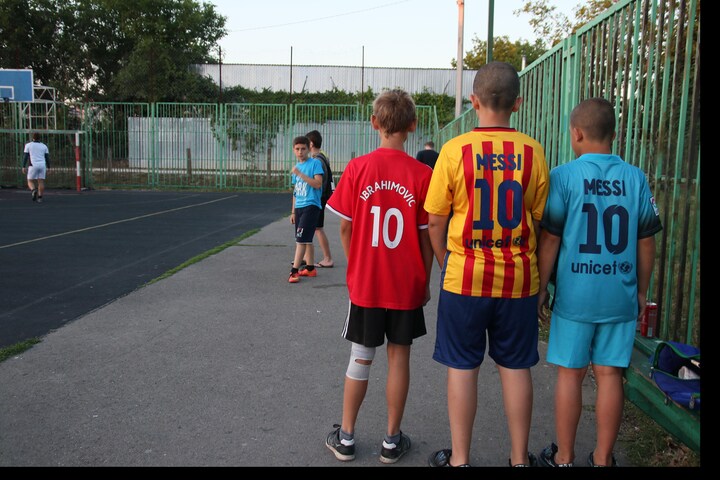 For de børn, der spiller fodbold ved siden af den bane, det danske hold skal træne på, er der ingen tvivl om hvem deres helt er: Messi. Trøjerne på de fleste af børnene er Barcelona-trøjer med argentinerens navn, mens et skandinavisk islæt i form af en Ibrahimovic-ryg også blander sig.