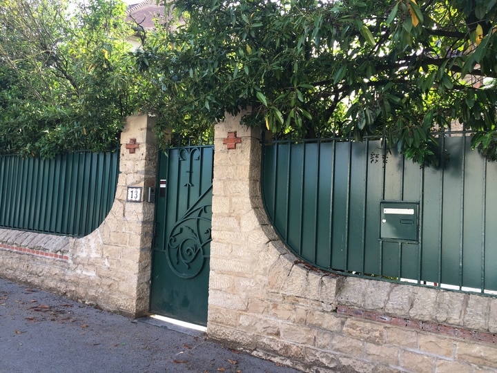 ”Boulevard des 9 clés”, står der på papiret. Efterfulgt af nummeret 13. Bag den adresse og nummer rejser sig et stort brunt hus omgivet af et rækværk af lyse mursten, et grønt plankeværk og en grøn port.