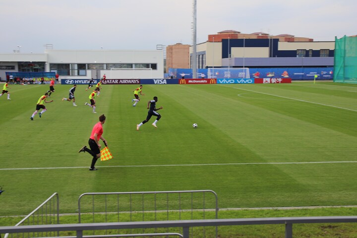 Det er reserverne i den franske trup, som skal vise sig frem for træneren i en to gange 30 minutter-kamp mod de unge russere; bogstaveligt talt drenge mod mænd.