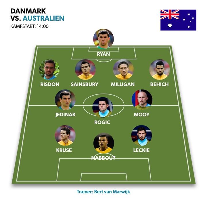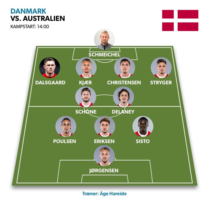 Dermed stiller Danmark med følgende 11 fra start til opgøret mod Australien kl. 14.00:
