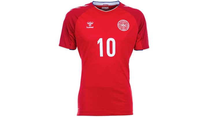 - Tredjepladsen går til Danmark. Trøjen står med det velkendte Hummel-logo, som er flot, og så verdens flotteste og måske mest enkle fodboldlogo, DBU. Det står super skarpt på den postkasserøde baggrund. Måske er jeg farvet af min nationalitet, men jeg er stor fan af den danske trøje, fortæller Karl Erik Stougaard og fortsætter: