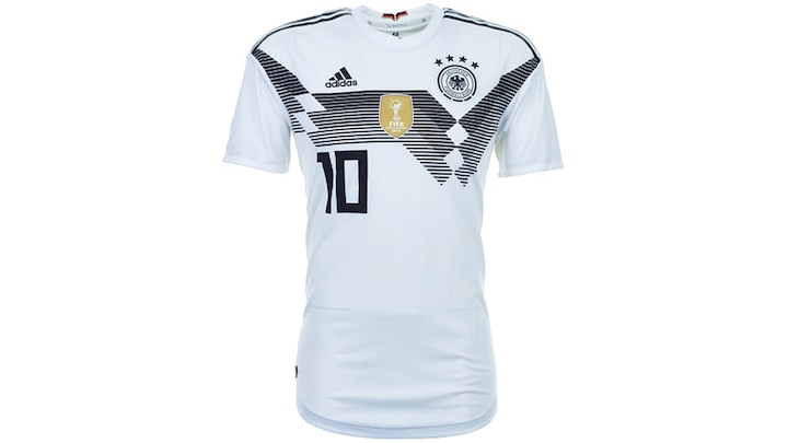- Den grimmeste trøje af alle. Her må jeg konstatere, at det er det bedste fodboldhold, der er det værste. Tyskland har tre striber, der slår et underligt hak. Det ligner et krak i økonomien, og en kurve der falder, lyder det fra Karl Erik Stougaard.