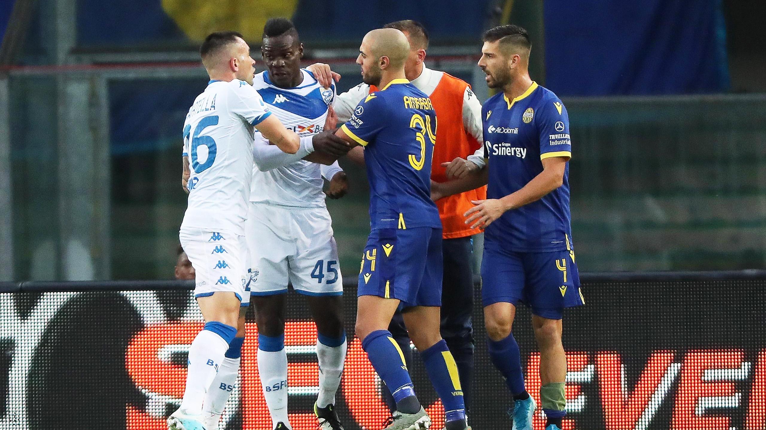 Verona har afvist, at der var tale om racistisk adfærd i kampen, som Brescia vandt 2-1. Men en video på de sociale medier viste tilhængere, der råbte efter Balotelli, før angriberen fik nok og hamrede bolden efter dem.