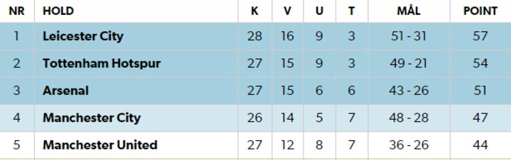 I øjeblikket ligger Tottenham nummer to i Premier League med tre point op til førerholdet Leicester.