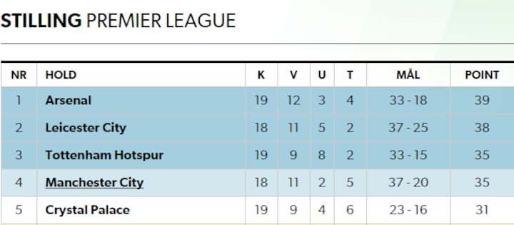 Ansættelsen af italieneren har vist sig som en fuldgod erstatning – måske endda mere end det. For Leicester har indtil videre i denne sæson fløjet på en lyserød sky af flotte resultater. Den imponerende stime af sejre i Premier League fortsætter, og da der er gået 13 runder af indeværende sæson, kan Claudio Ranieri og Leicester finde sig selv i toppen af den bedste engelske række. Den række, de var ved at rykke ud af i sidste sæson. Tæller man forrige sæsons 10 sidste kampe med, kan Leicester bryste sig af kun at have tabt tre ud af 29 kampe i træk i Premier League, og her snakker vi nederlag til Chelsea, Arsenal og nyligst Liverpool. Ellers er det blevet til imponerende 19 sejre og syv uafgjorte.