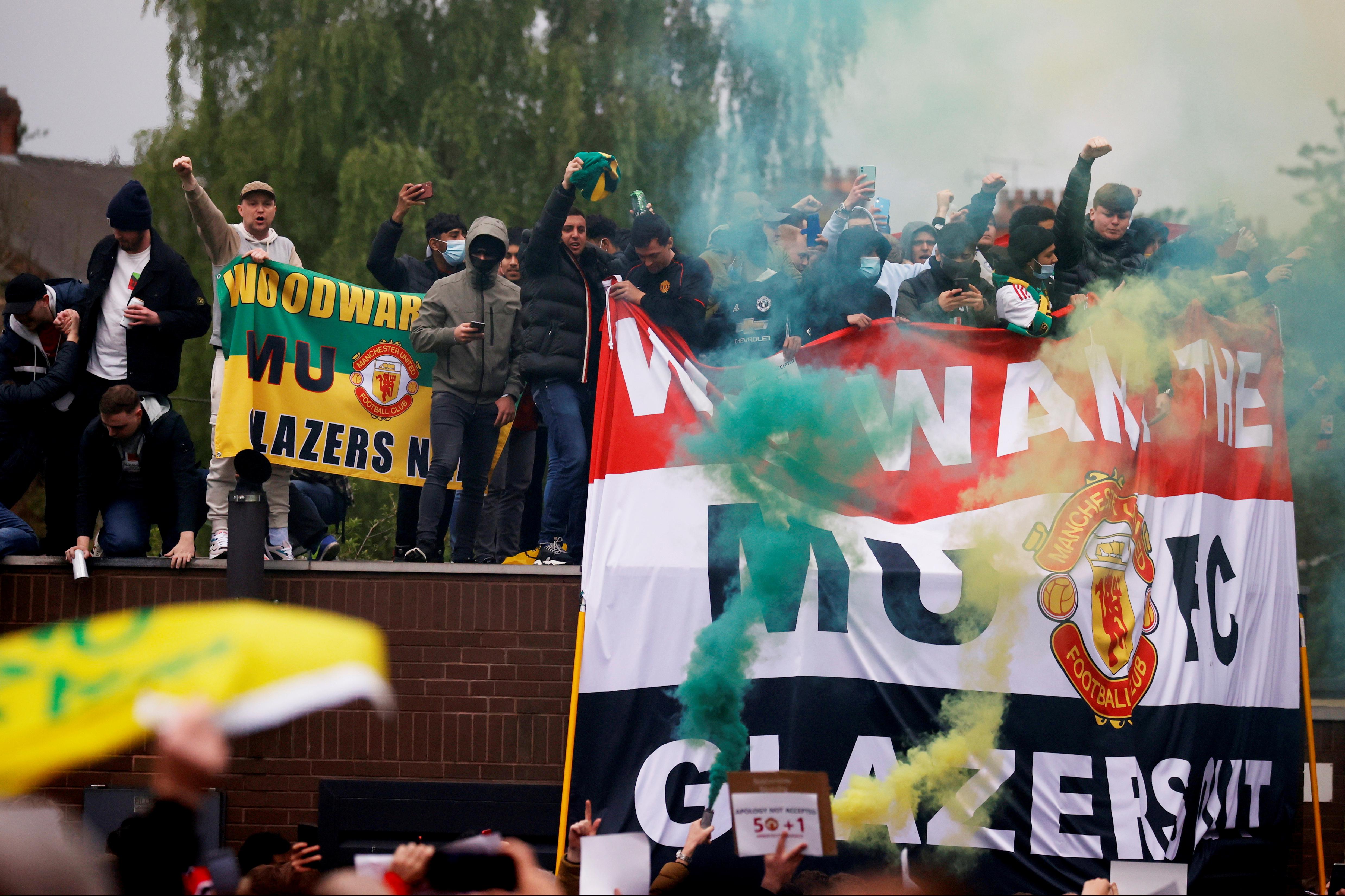 Fansene protesterede i Manchesters gader i løbet af eftermiddagen samt ude foran stadionet mod klubbens ejer, Glazer-familien. Hele balladen kulminerede, da flere hundrede fans sikrede sig adgang til stadion.