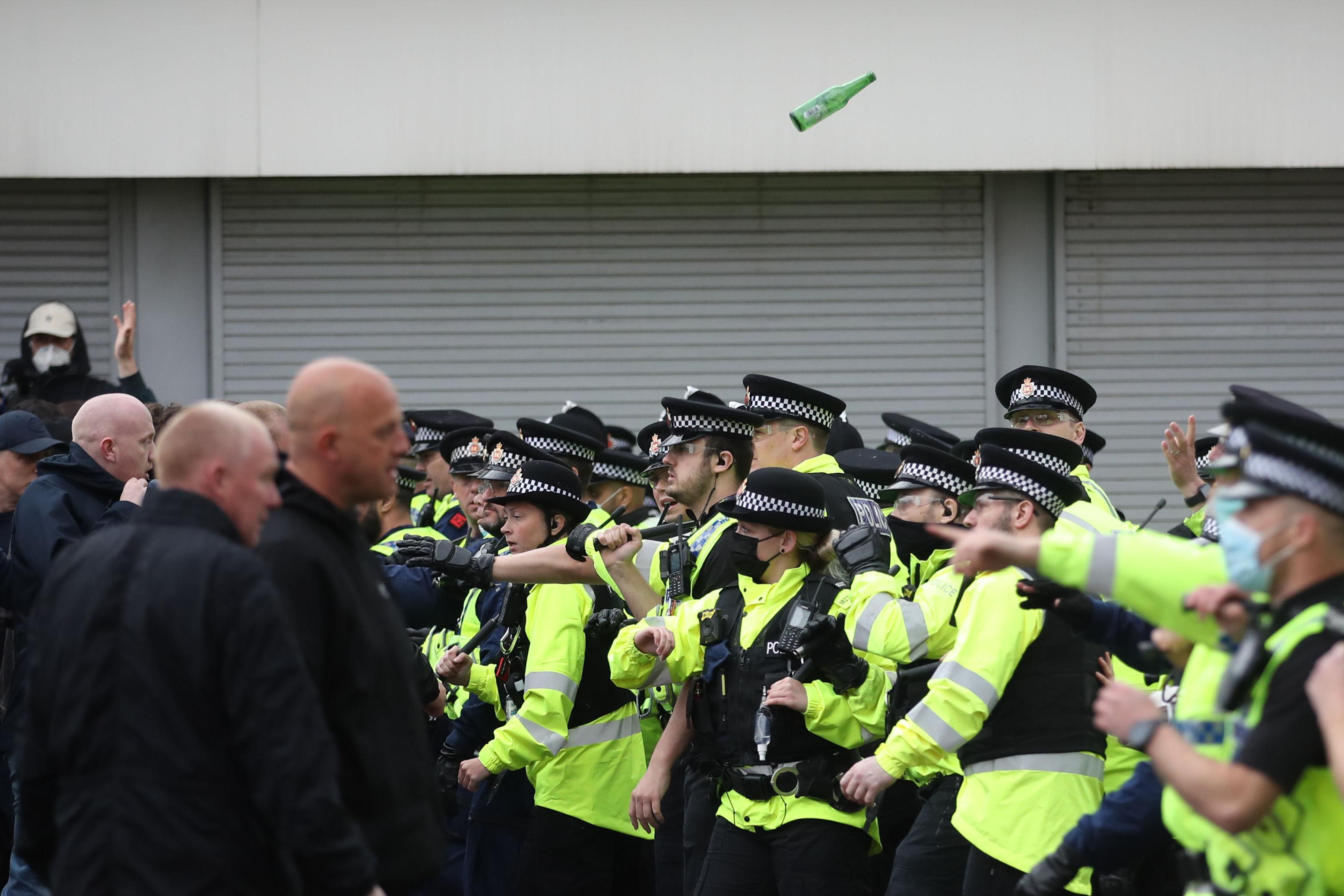 - Men der er ingen undskyldning for de handlinger, som en mindre del stod for, og som gik ud over politibetjente og bragte andres sikkerhed i fare, siger Burnham ifølge Ritzau.