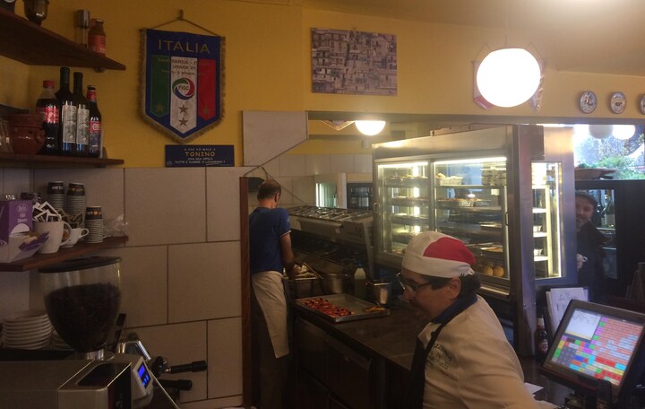 Han arbejder på pizzeriaet La Fiorita i København og skulle egentlig først arbejde klokken 14. Men i dag er han mødt tidligt ind.