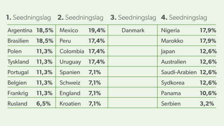 Blot 7,1 procents risiko er der for, at Danmark skal møde det stærkeste hold fra det lag.