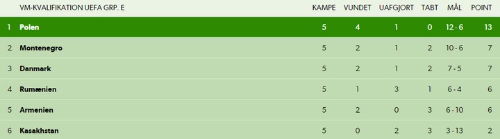 De rød/hvide er før aftenens udekamp mod Kasakhstan blot placeret på en tredjeplads i gruppen, a point med Montenegro på andenpladsen og hele seks point efter Polen, der virker noget stærkere end de øvrige hold i gruppen.
