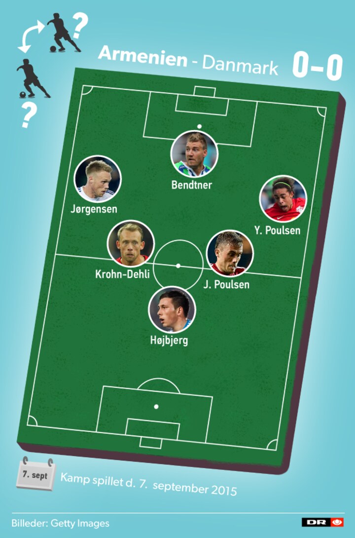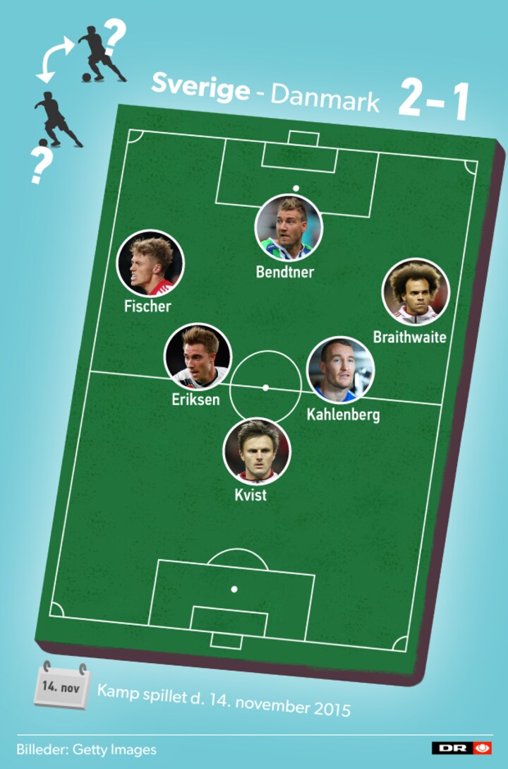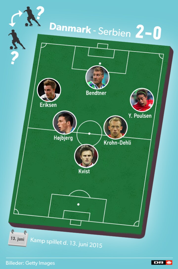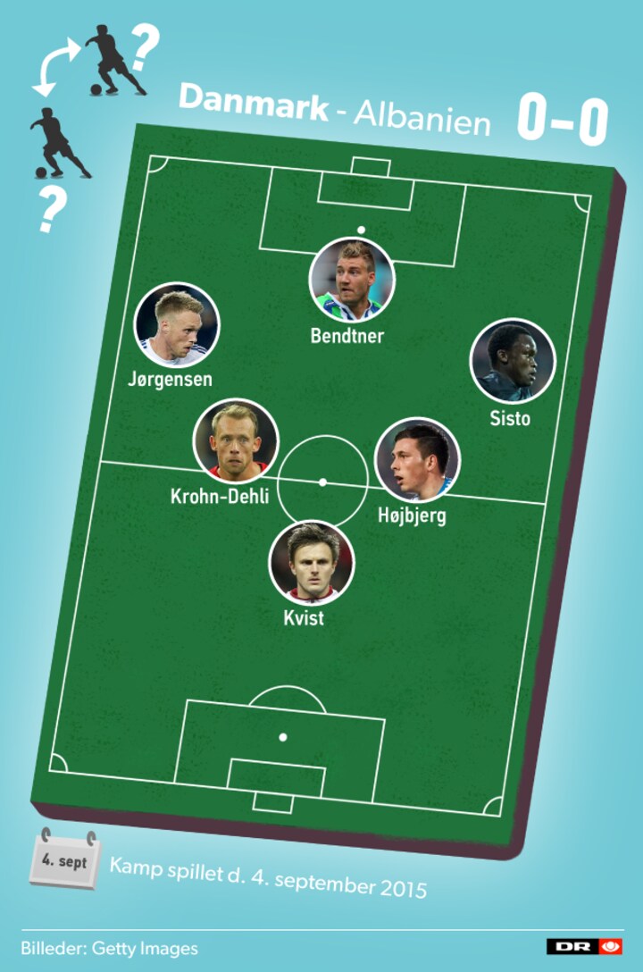 Landstræner Morten Olsen har - alt efter temperament - været kreativ eller rådvild i forhold til den offensive del af startopstillingen i 2015.