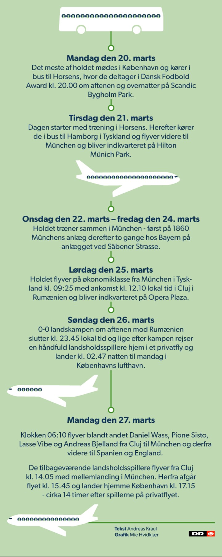 Få overblik over landholdets rejseplan til og fra Rumænien herunder