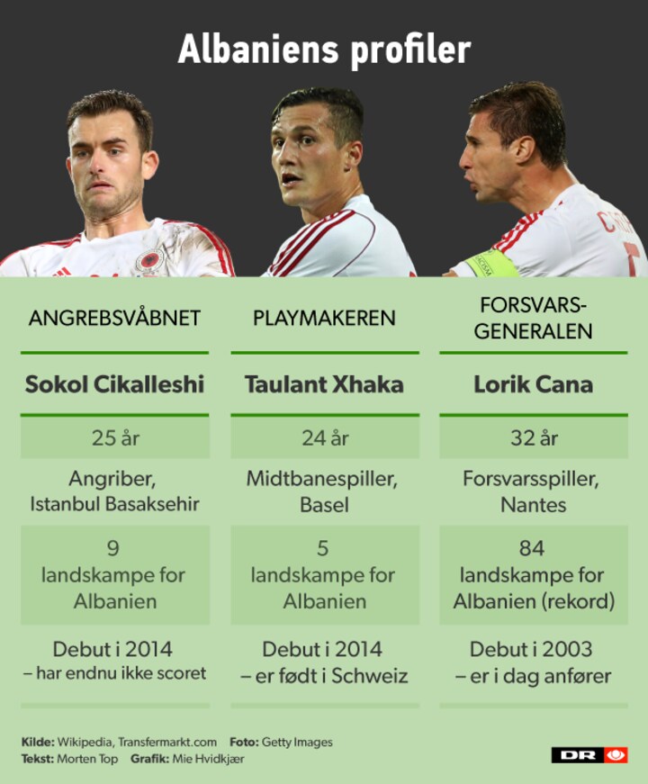 Albaniens anfører, talisman og forsvarsgeneral hedder Lorik Cana. Den 32-årige midtstopper har den albanske landkampsrekord med 84 landskampe, og han har fået en rolle som totalt samlingspunkt for albanerne. En vigtigere spiller findes simpelthen ikke på holdet.