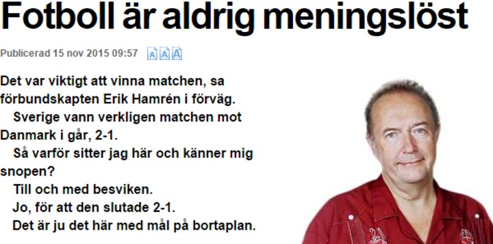 Selvom fredagens terrorhandlinger i Paris lagde en dæmper på optakten til kampen mod Danmark, tog flere af de svenske avisers kampanalyser udgangspunkt i, at fodbold var med til at demonstrere, livet fortsætter i skyggen af uforståelige begivenheder.