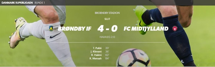 Første opgør mellem FC Midtjylland og Brøndby IF var i første spillerunde, hvor Brøndby IF vandt med overbevisende 4-0 på eget græs.