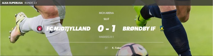 Seneste kamp mellem FC Midtjylland og Brøndby IF var 1 marts, hvor Brøndby IF vandt 1-0 på MCH Arena. Kasper Fisker blev matchvinder ved den lejlighed.
