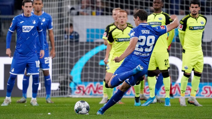 - Robert Skov bragte i det andet minut Hoffenheim på sejrskurs med holdets første frisparksmål i sæsonen. Med sit ellevte skud på mål i Bundesligaen scorede han for første gang, og han var stærk og vandt 64 procent af sine dueller i kampen, lyder begrundelsen.