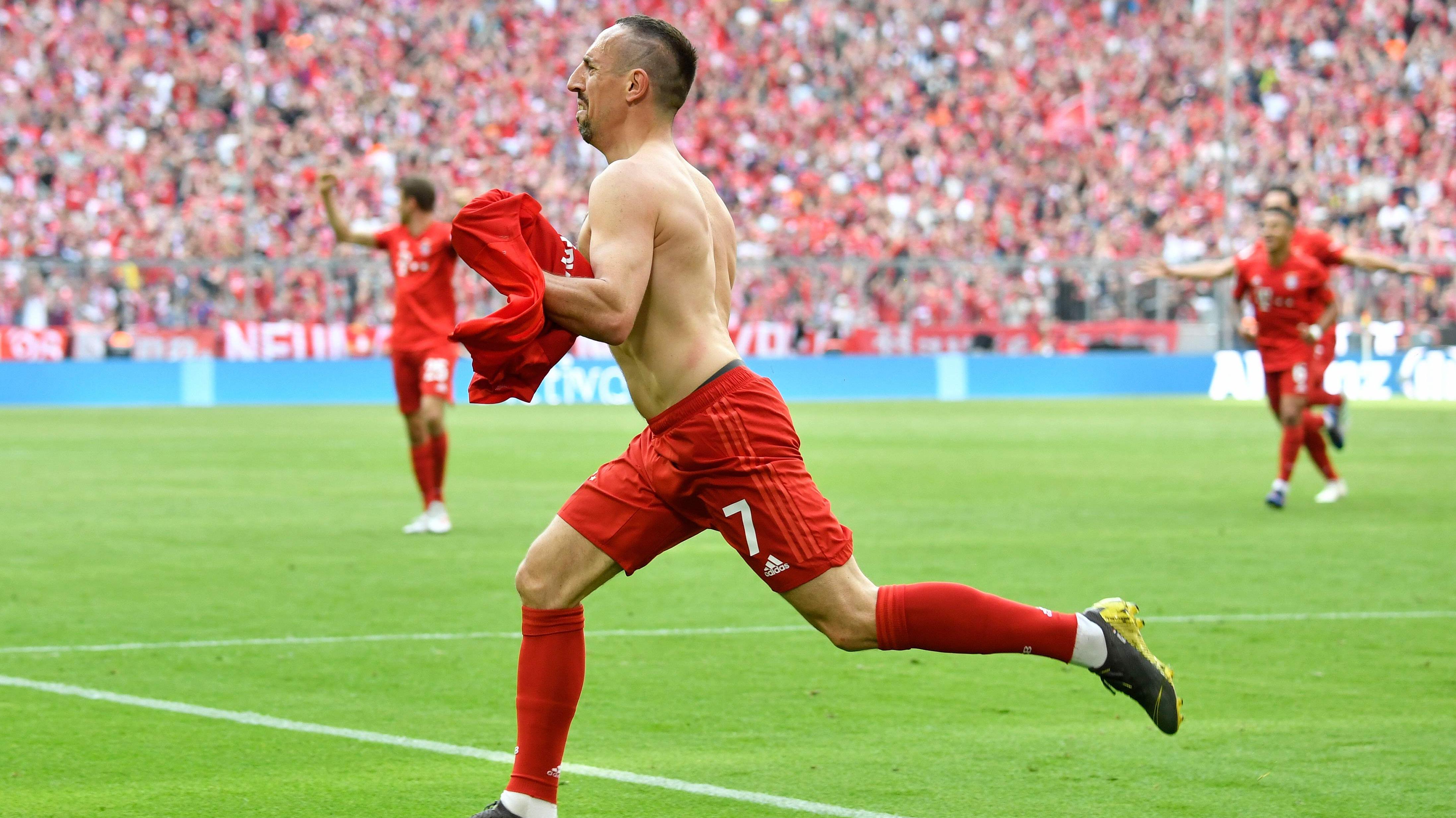 I sin sidste hjemmekamp for Bayern München lykkedes det Ribery at takke af med et perlemål til 4-1, hvor franskmanden snød to Frankfurt-spillere og chippede den over keeperen.