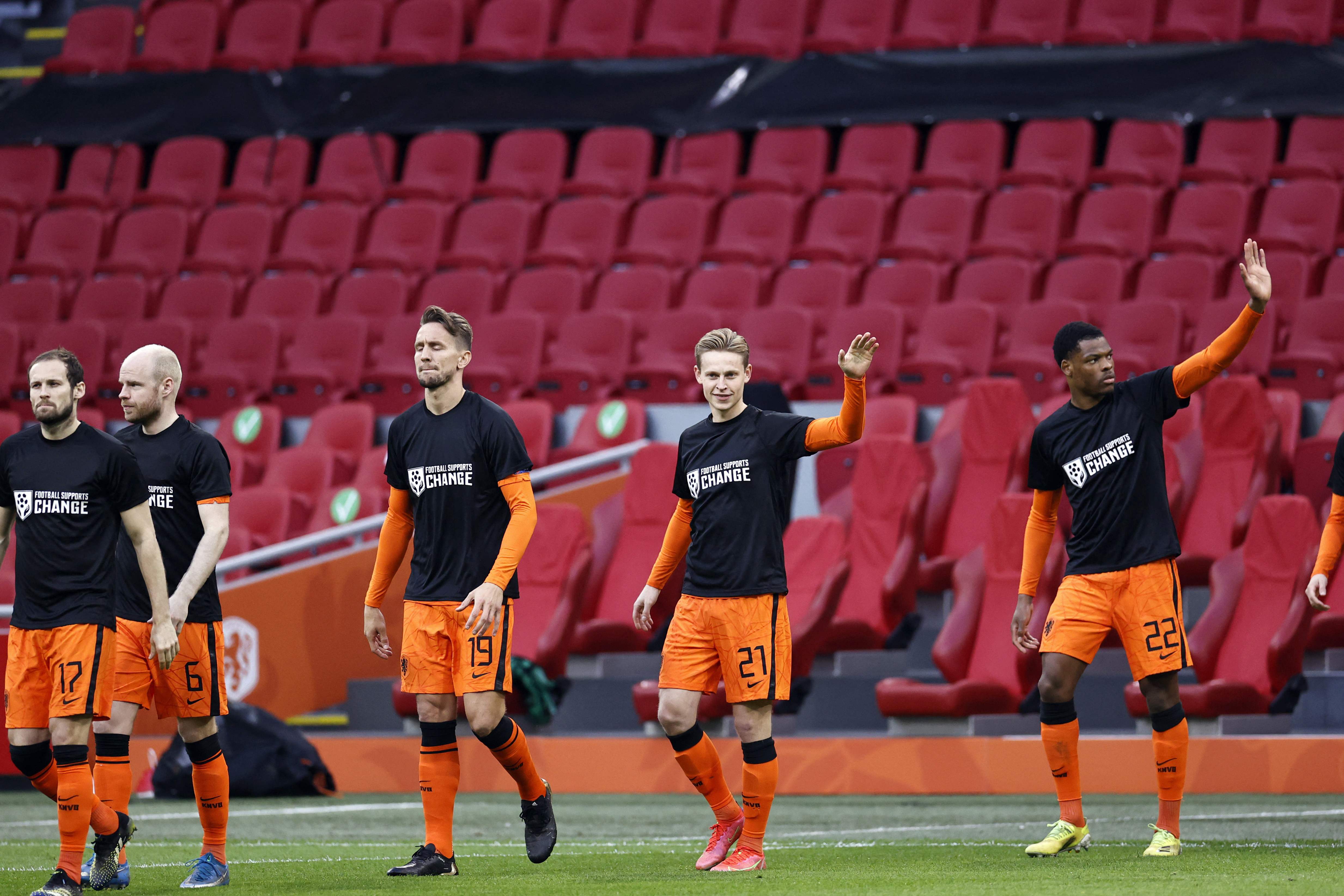 Debatten om næste års VM i fodbold i Qatar fik søndag nyt liv, da de danske landsholdsspillere før VM-kvalifikationskampen mod Moldova iførte sig trøjer med teksten 'Football supports change'.