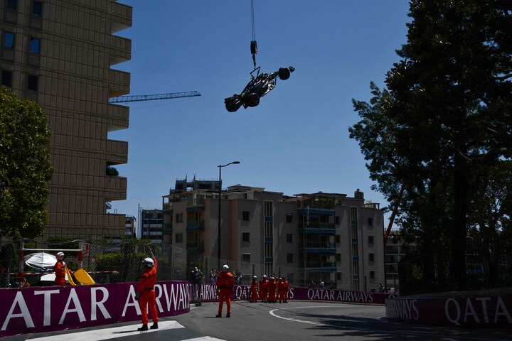 Da hans ødelagte Red Bull-bil skulle fjernes fra banen, blev den nemlig, med hjælp fra en kran, hejst højt op i luften, og det gjorde det muligt for fotografer at knipse massevis af billeder af bilens nedre del.
