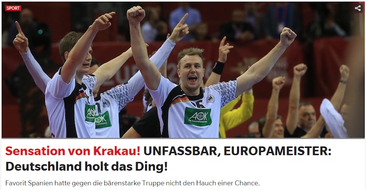 På Hamburger Morgenpost holder man sig heller ikke tilbage. 'Sensationen i Krakow! UFATTELIGT, EUROPAMESTER' lyder tophistorien på hjemmesiden i minutterne efter sidste fløjt.