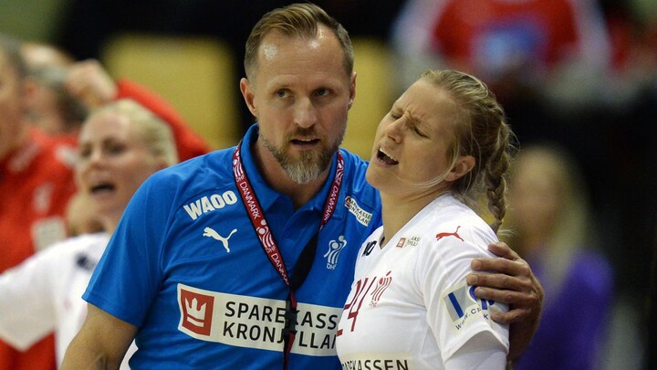 Anden halvleg startede på den værst tænkelige måde set med danske briller. Efter to et halv minuts spil - med to mål til Polen - fik København Håndbold-spilleren Mia Rej et vrid i sit knæ og måtte bæres fra banen i store smerter.