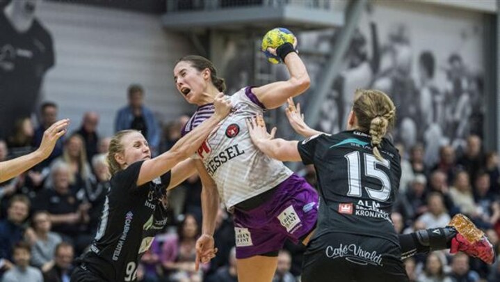 Lærke Nolsøe Pedersen scorede syv gange for Nykøbing Falster og blev kampens topscorer, mens Mia Rej lavede seks mål for København Håndbold.