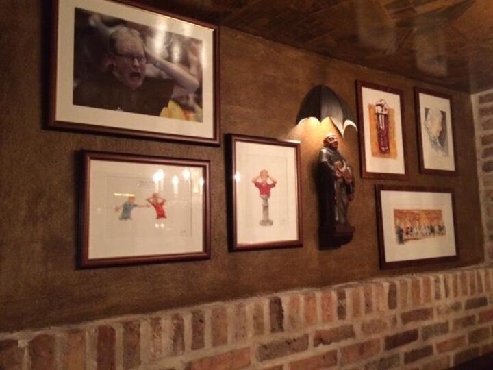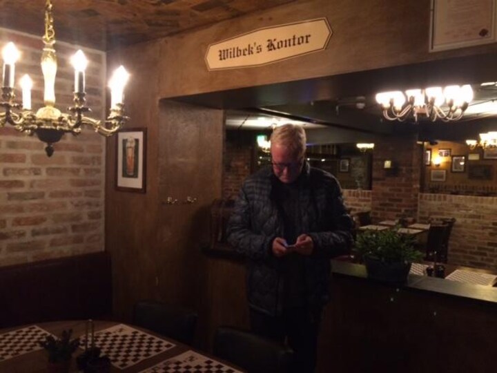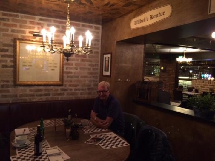 ”Wilbek’s Kontor”, står der på skiltet, mens der på modsatte side hænger billeder og karikaturer af den tidligere toptræner i aktion. Jo, Ulrik Wilbek har fået sit eget lille hjørne på restauranten.