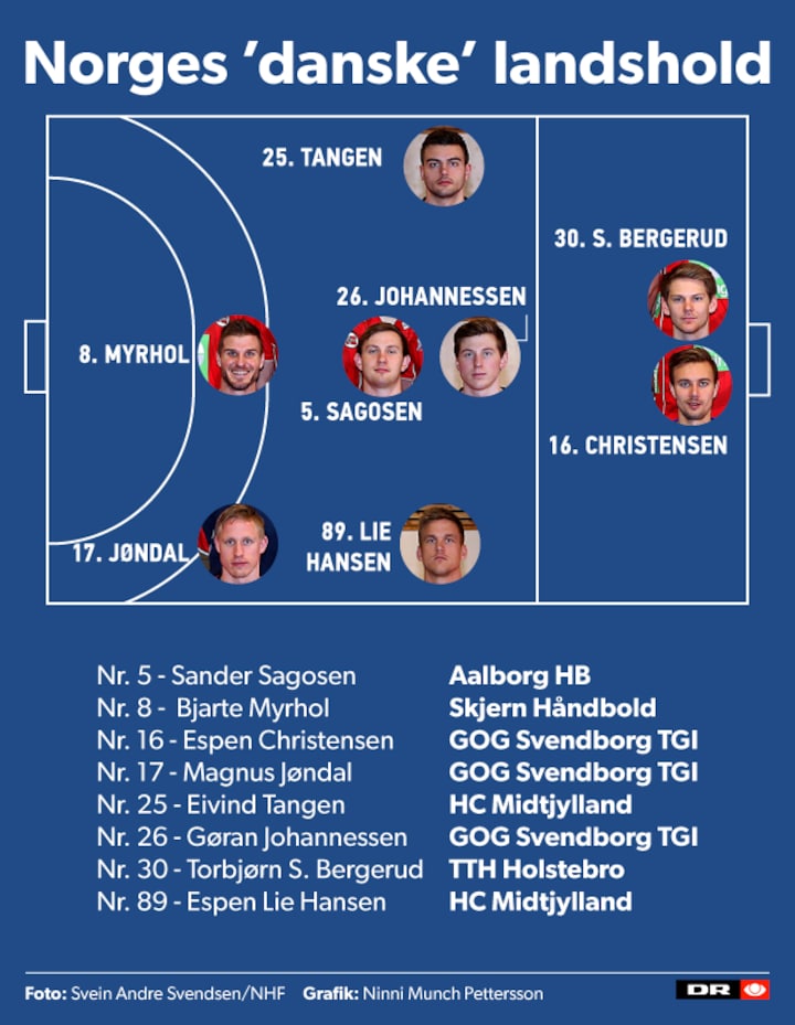 Og der er god grund til at holde med vores brødre mod nord. Den norske trup er nemlig halvt dansk – i hvert fald hvad angår nationaliteten på spillernes klubberne - hele otte ud af 16 i landstræner Christian Berges trup tjener til daglig til føden i Danmark.