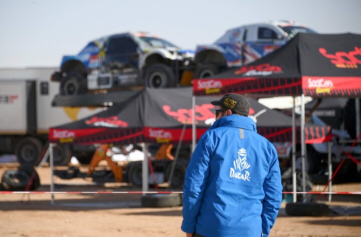 Allerede før Dakar Rally begyndte, var der stort drama i ørkenen, da en bil med fem franskmænd fra det franske hold Sodicars stod i flammer.