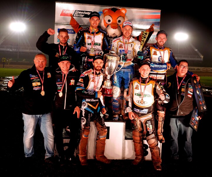 12 timer tidligere før den episke monolog i telefonen har han stået i garagen og åbnet en flaske champagne med sin slæbesko, kort efter han som anfører for speedwayholdet Holsted Tigers har kørt konkurrenterne ned i slaggerne og sikret sønderjyderne deres 15. DM-titel i historien.