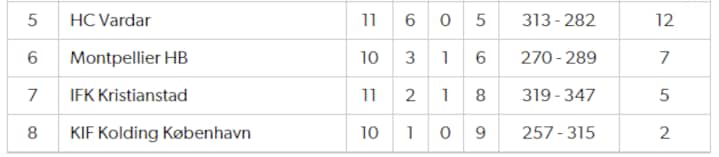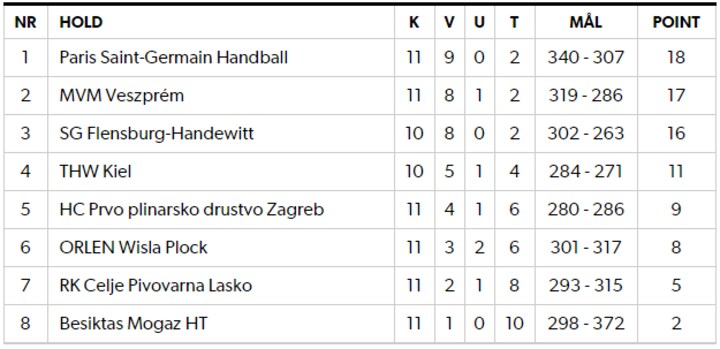 Stillingen i bunden af KIF Koldings gruppe, hvorfra de seks bedste går videre.