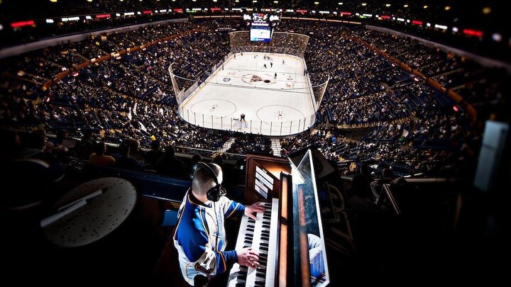 Så når St. Louis-holdene Blues og Cardinals går på banen i henholdsvis ishockey og baseball, akkompagnerer Jeremy Boyer begivenhederne.