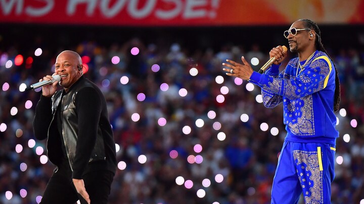 I år var det dog ikke popmusikken, der fik en tur i manegen. Hiphoppen, der ellers i mange år har domineret hitlisterne verden over, har ikke for alvor fået plads i pauseshowet tidligere - men det blev der rådet bod på i år med et show, der havde store navne, hyldester og et omdiskuteret knæ.