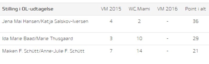 Derfor skal Baad og Thusgaard altså slutte otte placeringer bedre end Salskov-Iversen og Hansen ved VM for at indhente dem.