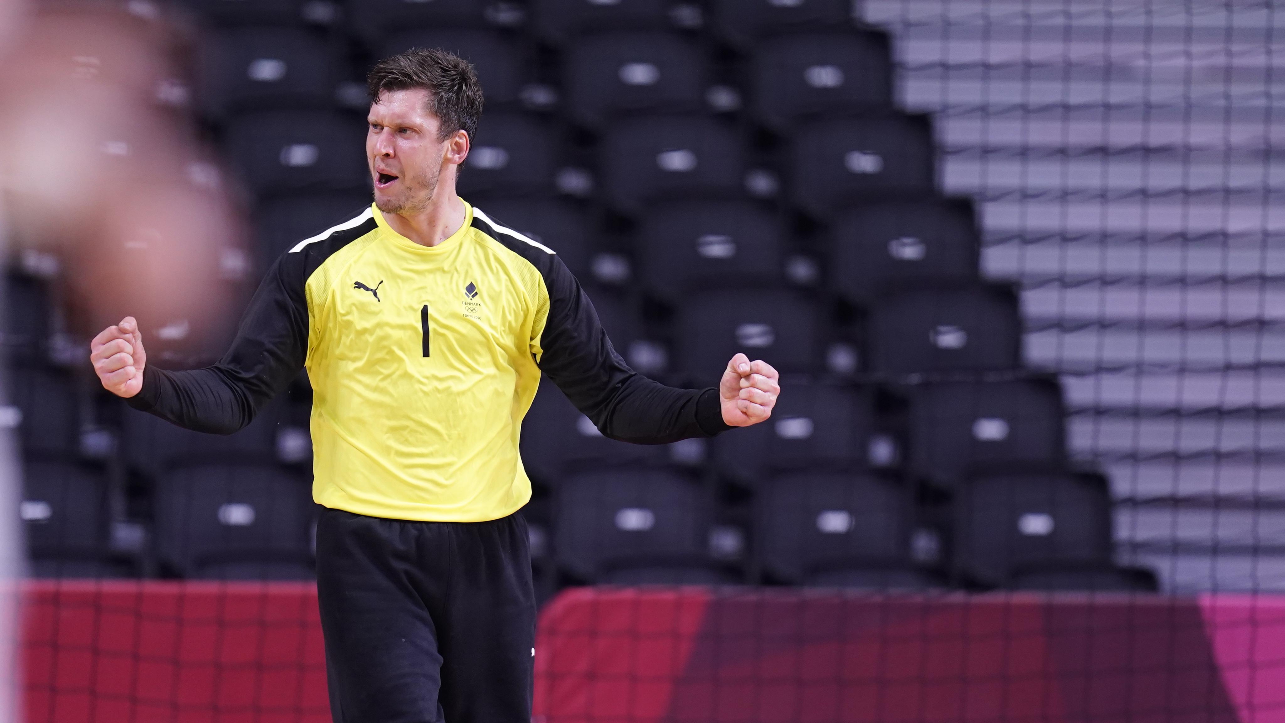 For de følelsesmæssige champagnepropper sprængtes lige hér på gulvet i Tokyo. Landstræneren tog sig til hovedet, Mads Mensah brølede og startede en klynge, der hurtigt voksede sig større og større.