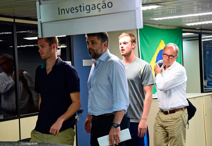 De to amerikanske svømmere Gunnar Bentz og Jack Conger havde ellers sat sig til rette i et fly med kurs mod USA, da brasiliansk politi valgte at tilbageholde dem.