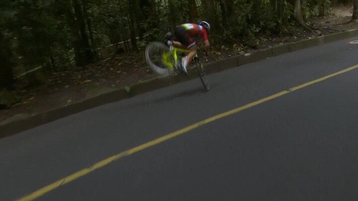 Den hollandske cykelrytter Annemiek van Vleuten lå med godt og vel 11 kilometer til mål med helt fremme i kvindernes landevejsløb, da hun på en nedkørsel mistede balancen og røg med hovedet først ned i asfalten.