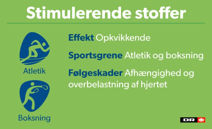 Stimulerende stoffer som eksempelvis amfetamin har en opkvikkende effekt, som gør, at man er mere ’klar’. Det påvirker hjernen og har en opkvikkende effekt. Det kan man have brug for i mange forskellige idrætsgrene, for eksempel hvis man står på startlinjen eller skal i bokseringen. Brug af eksempelvis amfetamin kan give atleten afhængighed og føre til en overbelastning af hjertet.