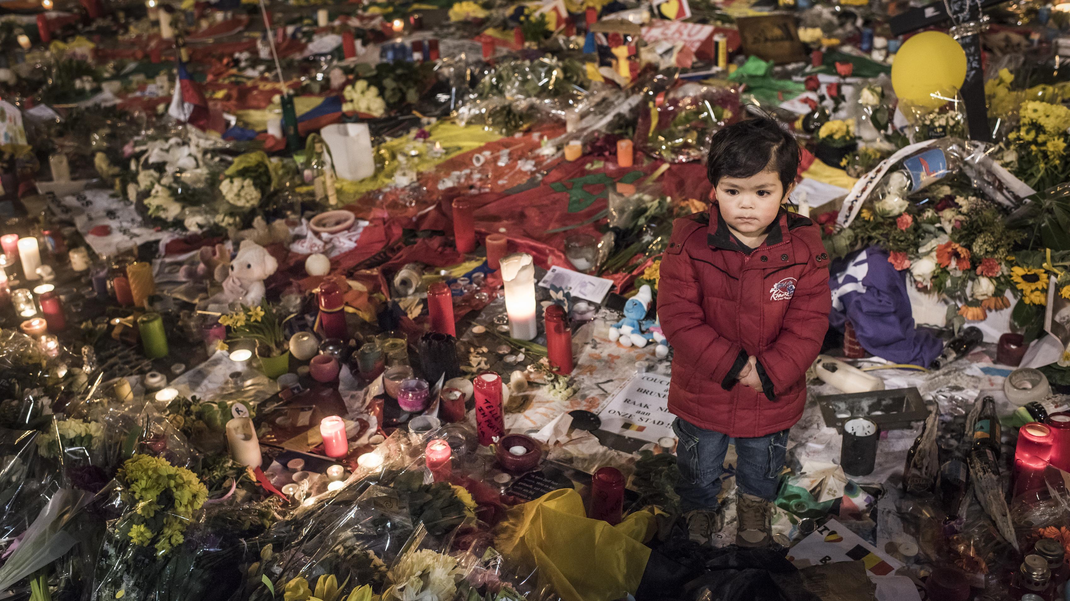 Uden hun har lagt mærke til det, er en mand gået om bag hende med en stor kuffert. Han detonerer en bombe, der sprænger alt omkring hende i luften: Hun står i epicenteret, da det værste terrorangreb i Belgiens historie i bogstavelig forstand eksploderer om ørerne på hende, og lyset slukker.