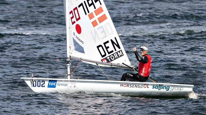 Her har verdens bedste laser radial-sejlere i den seneste uge været på vandet for at sikre sig de sidste billetter til sommerens OL i Tokyo, men mens der er blevet kæmpet nede bagerst, så har Anne-Marie Rindom nydt udsigten fra toppen af felten.