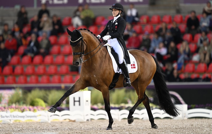 Dermed bliver det ikke til to VM-guldmedaljer på to dage for Cathrine Laudrup-Dufour, der søndag aften vandt holdkonkurrencen. Hun kan dog trøste sig med at være den første dansker i 16 år til at vinde VM-metal i de individuelle dressurdiscipliner.