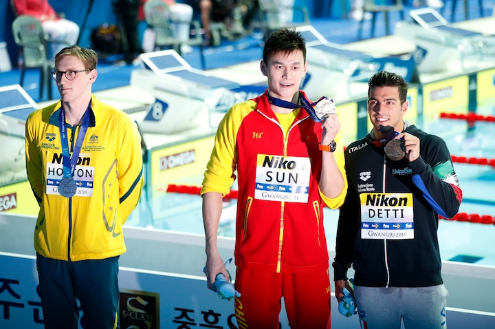 Australske Mack Horton vandt bronze, men nægtede at stille sig op på podiet ved medaljeceremonien, fordi Sun Yang tidligere var dømt for doping.