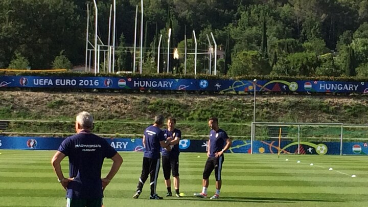 Forleden var der national joggingbuks-dag i Ungarn. Eller det vil sige, at mange mødte op på arbejde og i skoler med joggingbukser på for at hylde Gabor Kiraly. Hvorvidt, Ungarns to reservemålmænd har villet være med på den bølge, skal være usagt, men på træningsbanen i Tourrettes træner de også i joggingbukser. Kun målmandstræneren har shorts på.