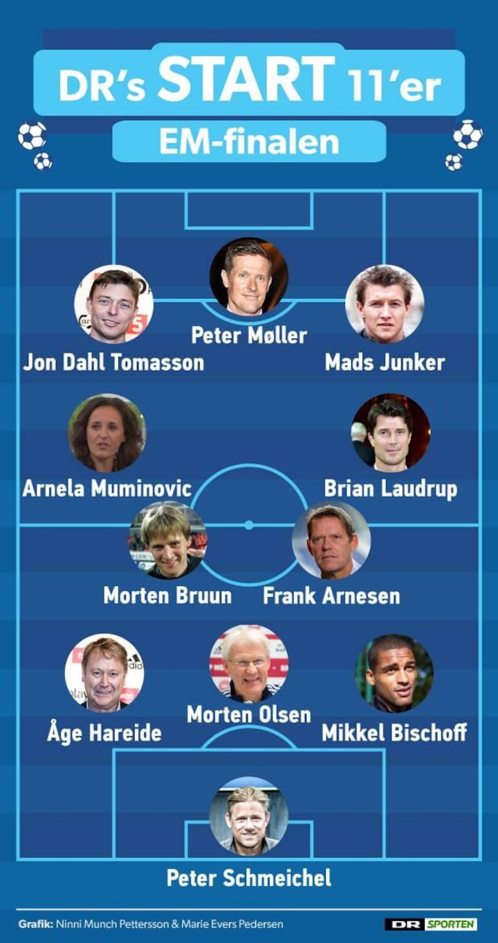 DR stiller i stærkeste opstilling til EM finalen. Brian Laudrup og Henrik Liniger kommenterer mens Peter Møller hjemme på Bryggen i sin optakt får besøg af mange af de gæster der har været med undervejs.