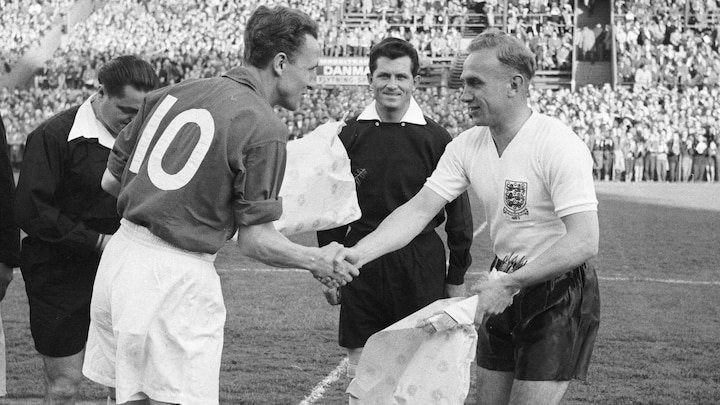 11. Billy Wright Centerhalf, som var den store spiller for det engelske storhold i 1950erne, Wolverhampton. Han var den første spiller i verden, der passerede 100 landskampe. Opnåede i alt 105 landskampe og var anfører i 90 af dem. Var anfører ved tre slutrunder i træk; VM i 1950, 1954 og 1958.