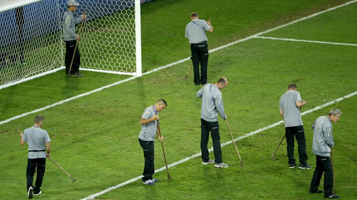 Gennem EM-turneringen har spillerne kæmpet med dårligt græs på flere stadioner. Det foreløbige lavpunkt i kvaliteten af grønsvær kom i aftes, da værterne Frankrig mødte Schweiz på stadionet i Lille. Spillet blev præget af, at spillerne ikke kunne stå fast og kontrollere bolden.
