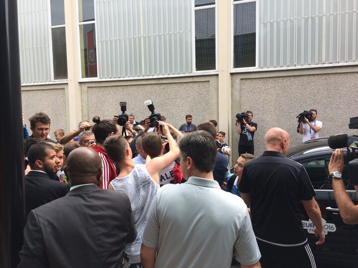 DR besøgte lejren forud for deres første EM-kamp mod Slovakiet, og stemningen, her en lille måned efter, er fuldstændig den samme: En afslappet attitude, hvor alle er velkomne, hvor Bale bare er en af ”the lads” og hvor der ikke langt til grin og glæde.