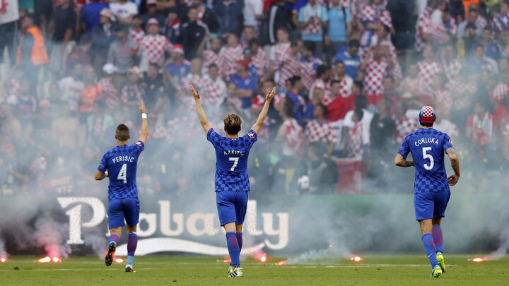 Folk på stadion i Saint-Étienne og hjemme i stuerne blev vidner til en række kedelige billeder, da en række kroatiske uromagere på valgte at kaste romerlys og kanonslag på grønsværen i anden halvleg af opgøret mod Tjekkiet.